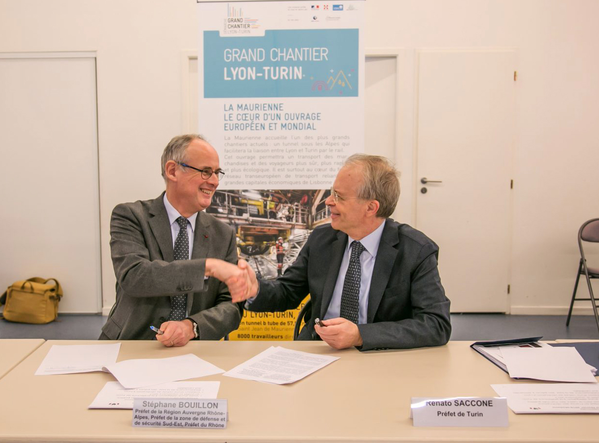 Le Préfet de la Région Auvergne Rhône Alpes, Stéphan Bouillon, et le Préfet de Turin, Renato Saccone, se sont rencontrés le 22 février à Modane afin de signer l’Accord.