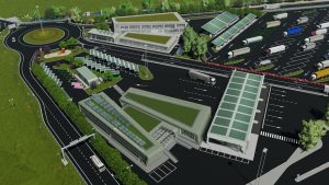 L’area destinata ai mezzi frigo e ai camper sarà anche dotata di attacchi per l’alimentazione elettrica in modo che i mezzi possano evitare di tenere acceso il motore per il funzionamento del frigo, risparmiando carburante ed evitando ulteriori emissioni nell’aria. Sempre in un’ottica di eco sostenibilità, le pensiline dei parcheggi coperti e parte degli edifici saranno rivestite di pannelli fotovoltaici che contribuiranno all’alimentazione della maggior parte delle necessità energetiche dell’area.